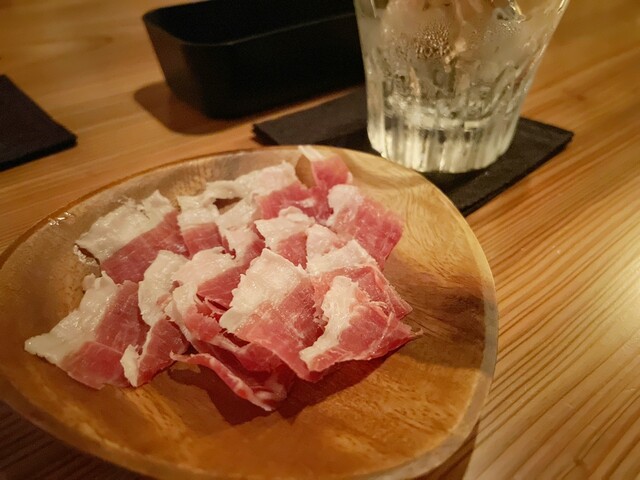 フードは基本的に乾き物とのことでしたが、この日は開店祝いの生ハムがあり、良い塩気でお酒が進んだ。