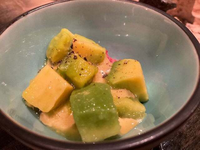 〆のデザートは果肉ゴロゴロのマンゴーのかき氷。