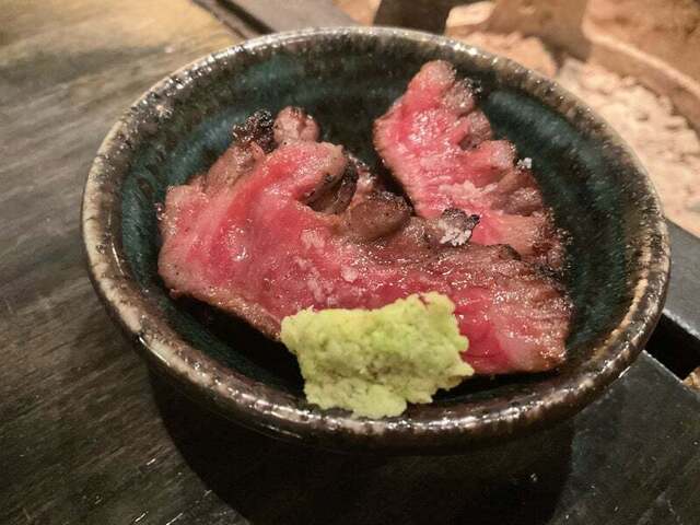 但馬牛の特選ハラミレアステーキ静岡産のワサビのみで