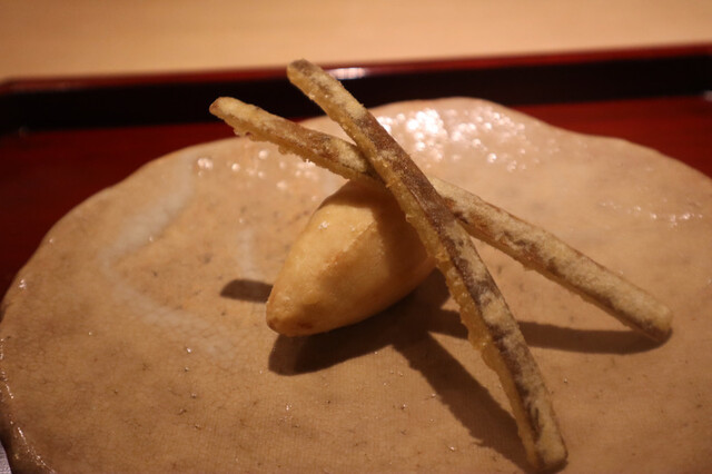・まごいもの厚衣揚げとごぼうの天麩羅