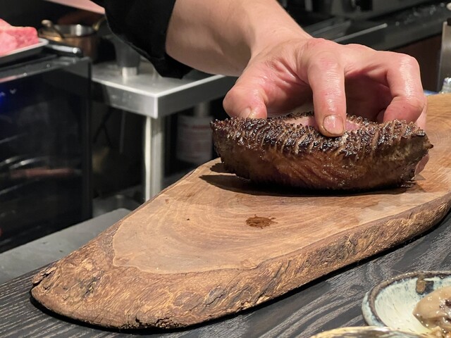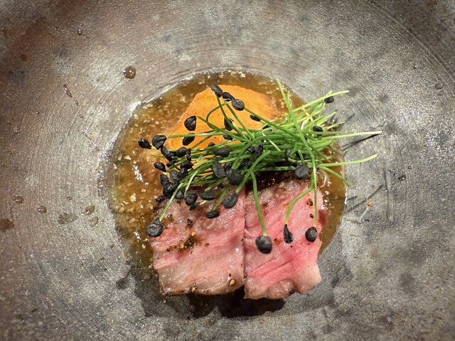 【 中津をにく 】いろいろな部位のお肉 和食会席のような変化のある料理方法 ダイナミックなパフォーマンス そして美味しいワイン