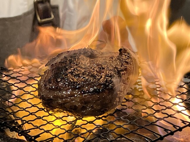 肉を焼く木村さんの姿を見て、皆さん感動します 「最高の火入れ」だと評されるように、お肉の部位毎に、焼く方法や焼き台を変え、味付けも工夫され、藁や炭などの香りに変化をつけて料理が出されます