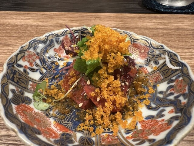 【 タルタル 】ヘレとサーロイン 鰻 ソースは雲丹とキャビア 海苔