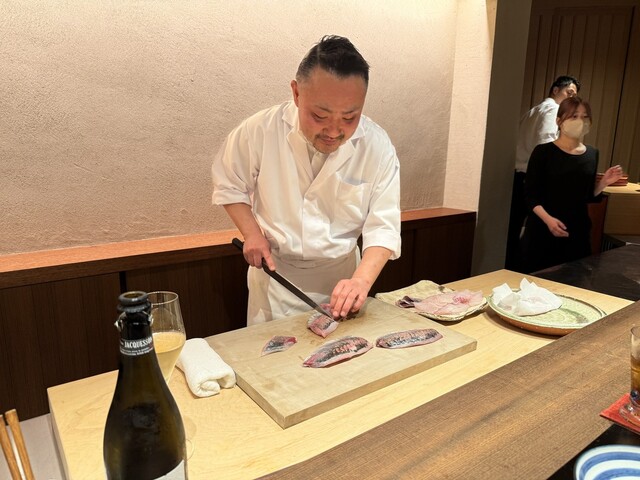 大阪梅田の最後の一等地と言われる「グラングリーン」に、野口さんは広々とした空間の新店舗を開店なさいました しばらくは、京天神野口さんはお休みで、大将はこちらにいらっしゃいます 京天神のお店でもスタッフ全員のチームワークが凄かったのですが、新店舗は客席数も増え、ますます、スタッフが活躍している姿に感心します 若いスタッフの方々も気さくに話をさせて頂き、新しい広い空間の新店舗で、楽しい時間と美味しい料理を頂きました