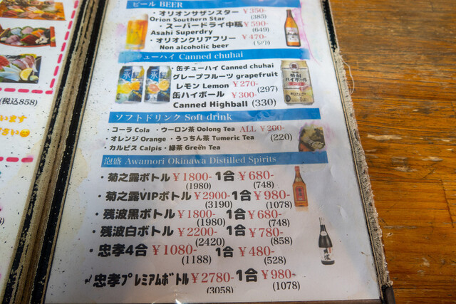 那覇空港から「ゆいレール」で1駅。赤嶺駅から徒歩5分、「魚まる」に海鮮丼(1,782円)を食べに再訪。ここの海鮮丼、大量なネタを綺麗に並べて見た目も素晴らしい! いつも並んでいますが、この日は15時に訪問。並ばずにカウンター席に。おひとり様でも安心です。オリオンビールもジョッキで385円と良心的。でも、仕事があるので我慢。そして運ばれてきた海鮮丼は美しい! 海老を頂点にネタが花のように。小皿も一緒についてくるので、ネタの半分を一度移動。ご飯が見えたところでワサビ醤油をかけて食べ始めます。ネタの種類が多いので、楽しいです。ネタも新鮮、特にマグロがいいですね。もずく酢に味噌汁で、休憩しながらしっかり完食。デザートに一口わらび餅がついています。いやー満足。ごちそうさまでした!