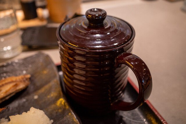 こちらの店舗、向かいには系列店の「回転寿司 根室花まる」があります。回転寿司は待ち50組とか、超混雑店ですね。その「花まる」の向かいにあるのがこちらの店舗でも美味しいお魚が食べられます。もちろん海鮮もありますが・・・やはりオススメの焼き魚です。何を食べようかメニューを見ていると、店員さんから「本日の一夜干し ごちそう三種」がオススメとのこと。この日は、ホッケ、マグロの尾、鯛、の3種類とのこと。また、ご飯は炊き込みがオススメとのことで「たらこバターご飯」にしました。お代わりは白米になるとのこと。10分程度で出てきました。焼き魚が美しい~ そしてたらこバターのご飯の存在感が凄い。焼き魚はほどよい焼き加減、ホッケの旨みがいいですね。そして、たらこバターご飯があっという間に無くなり、白米のお代わりを。そして焼き魚の身をほぐして出汁をかけてお茶漬けで。美味しい~ 2度楽しめますね。しっかり食べて、満足です。ごちそうさまでした。
