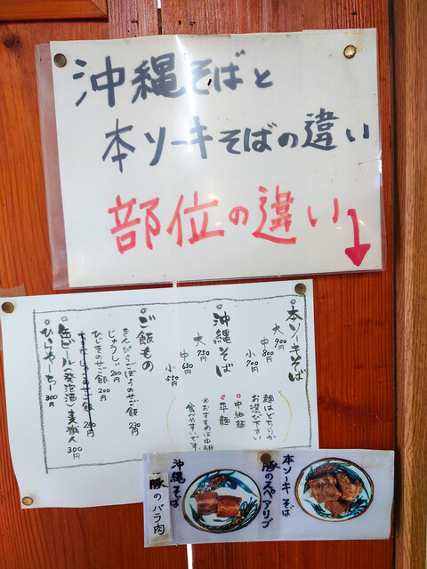 那覇空港に到着してすぐにこちらのお店に向かいます。那覇空港⇒赤嶺駅はゆいレールで1駅ですのでOKIKAで150円とお得。その赤嶺駅から徒歩10分程度。お昼は多くの人が並んでいますが、この日の訪問は15時。お店には私以外のお客さんがいませんでした。注文は入口の券売機で。「沖縄そば」と「本ソーキそば」の違いが貼られています。沖縄そばは豚のバラ肉。本ソーキそばは豚のスペアリブ。ここはスペアリブの「本ソーキそば小700円」を注文。麺の種類が選べますが、おすすめの「中細」でおねがいしました。座席はお一人様でも安心のカウンター席。お水はセルフで。5分程度で運ばれてきました。透き通るスープ、お肉も美味しそう。先ずはスープから。あっさりですがしっかり。そして麺は自家製とのことで、木灰を使った伝統的な麺。麺とスープが素晴らしくあいますね。そしてスペアリブ。初めにそのまま食べてお肉の美味しさを楽しんだ後、スープに浸して麺と一緒に。豚の美味しさがしっかり染み出し、そしてスペアリブもスープと一緒に食べると美味しい。楽しみ方が多数有りますね。スープも完食。小でもボリュームがあり満足。ごちそうさまでした!
