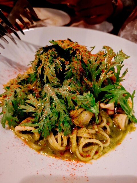 お料理は全部美味しくて中でもヤリイカと春菊のパスタともつ煮込みとピッツァに悶絶しました。