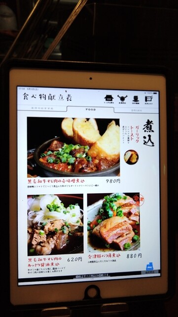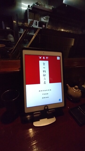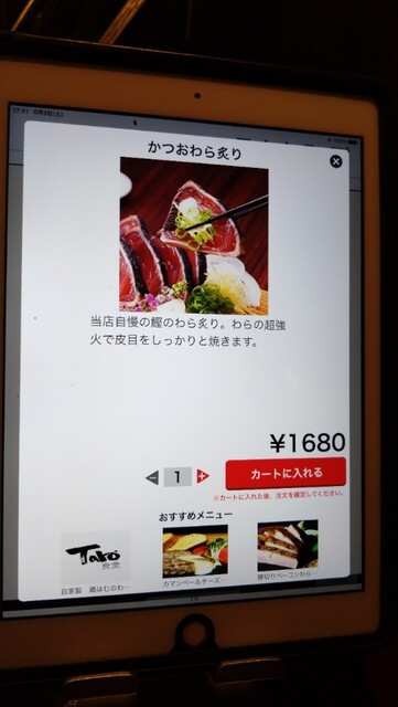 本日の1番客(喜)のため、店員さんを1人じめしてタブレット注文の方法を学ぶ。