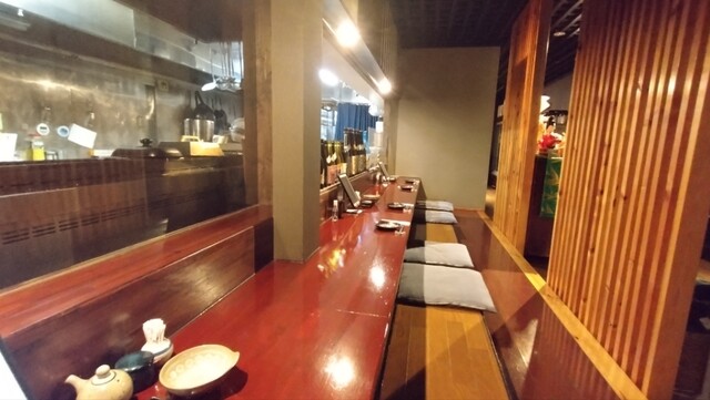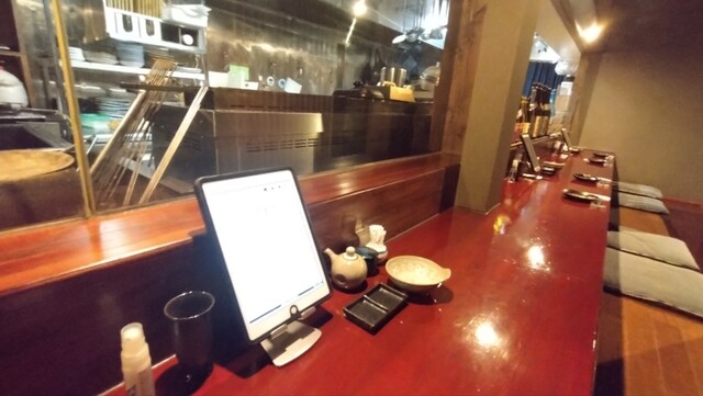 下足入れの鍵札を握りしめ、カウンター席に案内。