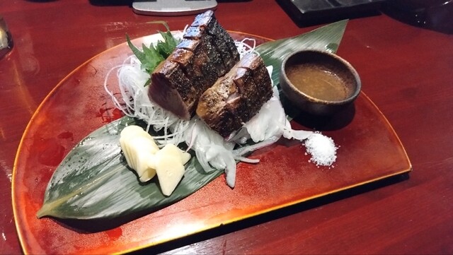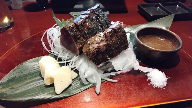 藁焼きの炎が立ち昇る様は圧巻。いずれの料理も盛付が整っており複数の薬味でお好みの味も付けが楽しめます。お店の雰囲気がとてもいいので、雰囲気をあてに肴を会話のきっかけにできる良きお店。故に