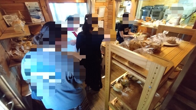 店内は4人も入れば密を感じる(笑)〜余裕をもって360度パンを探せる密だ。。。戸外にはドア越しに5人程待機してるが、侵入できなかった(笑)のか?