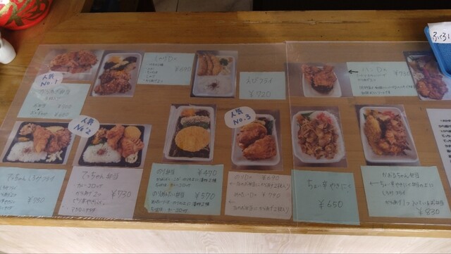 試しに何かの弁当と唐揚げ5ヶとおもたが、写真を眺めてたら当店No.1の唐揚げ弁当〜一択。。。唐揚げ5ケと明記に〜気が集中
