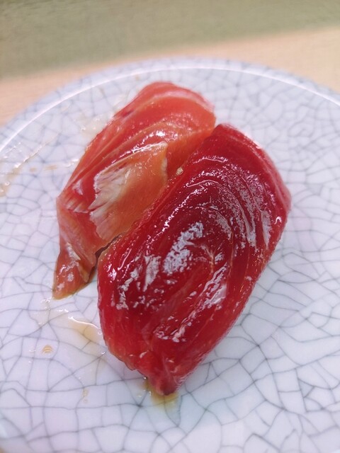 づけ鮪、鰹各2皿、とろ納豆軍艦、鰯、鯖、鯵、ボタン海老、帆立紐、茶碗蒸し、蜆汁、1,740円