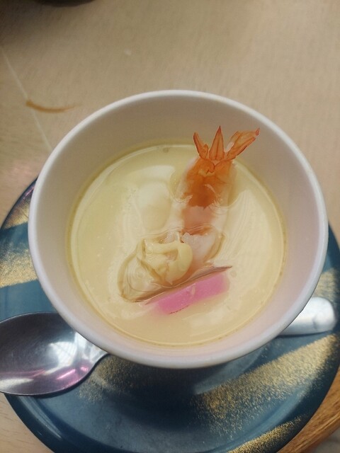 北寄貝、青柳、ボタン海老2皿、北寄紐、鰯、づけ鮪、鯵、手巻きサバシソ、ビントロ、野菜汁、茶碗蒸し。1,740円
