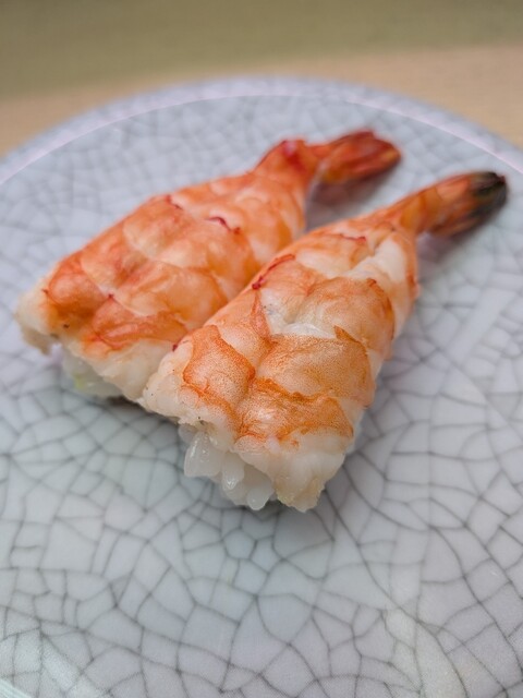 ボタン海老2皿、づけ鮪、鯵、小肌