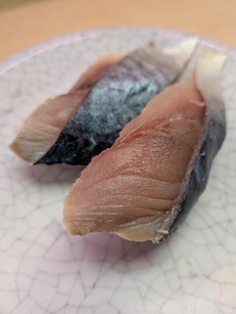 小肌2皿、鰯、鯖、びんちょう2皿、甘海老、づけ鮪、鮪、生ゲソ、青柳、あん肝軍艦、会計1,680円。青魚はアタリ。づけはサーモンの脂の味が移っていてイマイチ。あん肝はハズレ。