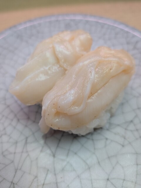 ネタでは貝類が特徴的。ラインナップは、ホッキ貝、活つぶ貝等。価格と味のバランスではホッキ貝が一番のお気に入り。殻から外したばかりの活つぶ貝は当店でも最高値水準。アタリハズレが大きいが、アタリを引くと会計額がアップしても、価格を超える満足感あり。貝類が充実がしている日は好印象
