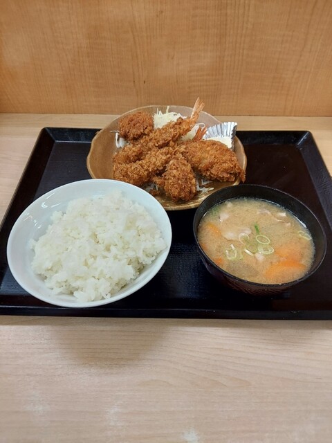 海老、ヒレ、メンチカツ定食879円