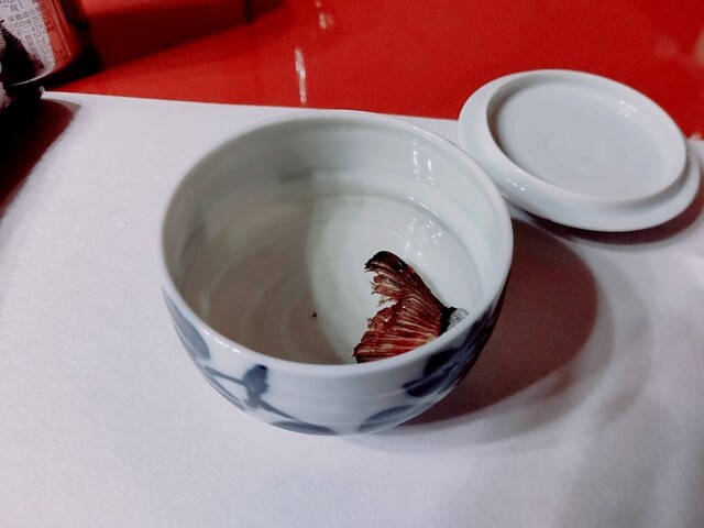 尾坪水産の串田さんのフグは定番の美味しさ。今回はカンパイにヒレ酒で濃厚。
