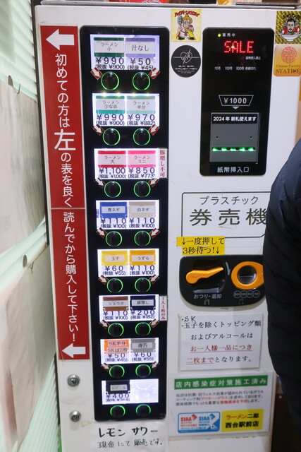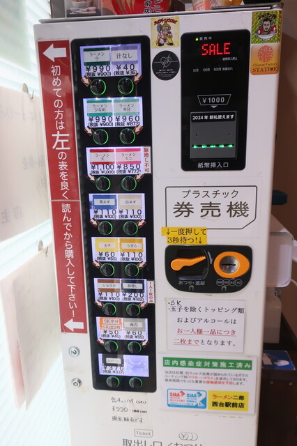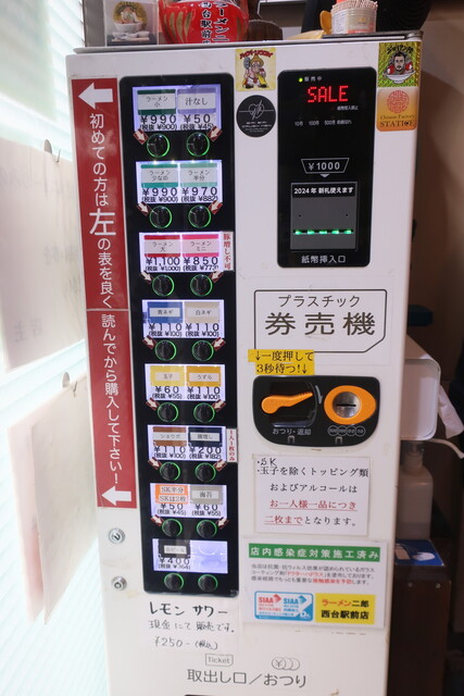食券制(千円札のみ対応)、なるべく小銭を用意しよう