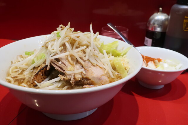 無料トッピングは、ヤサイ、ニンニク、アブラ、カラメ