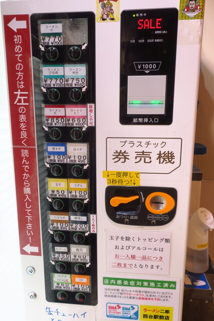 食券制(千円札のみ対応)、なるべく小銭を用意しよう