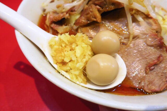 ラーメン半分 750円+ニンニク多め+白ネギ100円