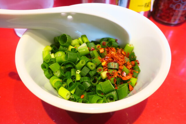 ラーメン半分 770円+ニンニク多め+青ネギ110円+SK100円