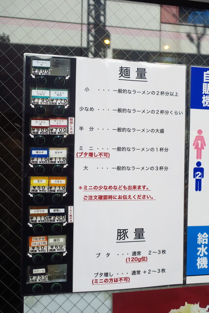 麺量は、一般的なラーメン比で小は2杯以上、少なめは2杯、半分は大盛、ミニで1杯、大は3杯