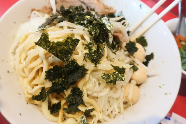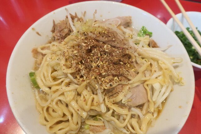 ラーメン半分+ニンニク少し+青ネギショウガ半分