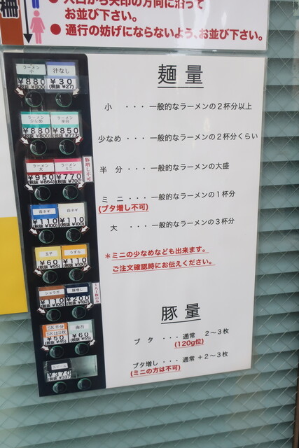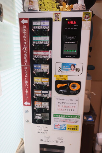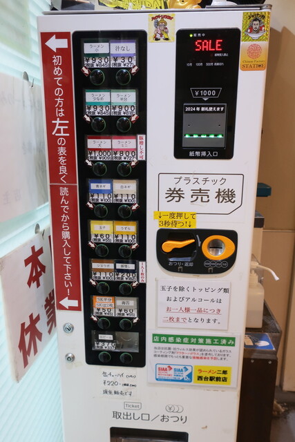 食券制(千円札のみ対応)、なるべく小銭を用意しよう