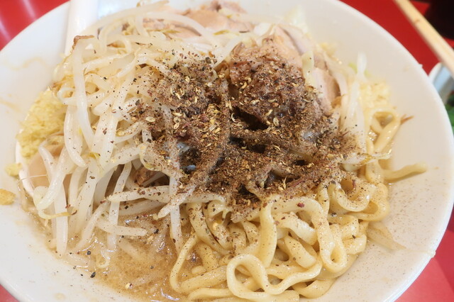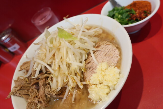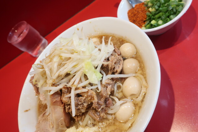 無料トッピングは、ヤサイ、ニンニク、アブラ、カラメ