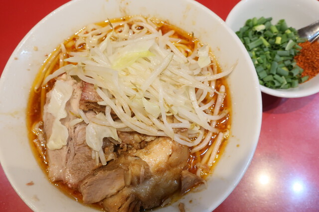 ラーメン半分 900円 + 青ネギ110円 ショウガ半分 110円 崩100円