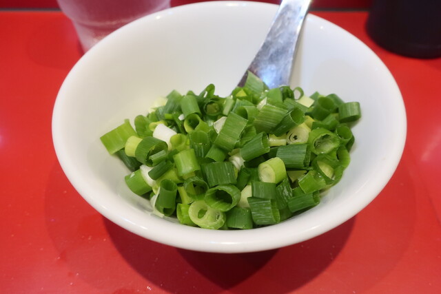 ラーメン半分 900円 + ニンニク少し + SK100円青ネギ110円