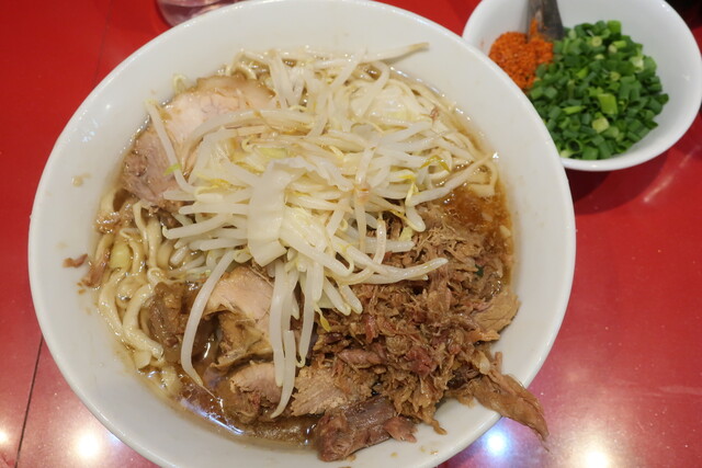 ラーメン半分 900円 + ニンニク + 青ネギ110円崩100円