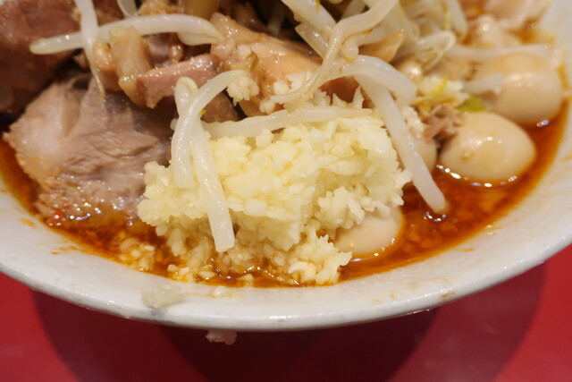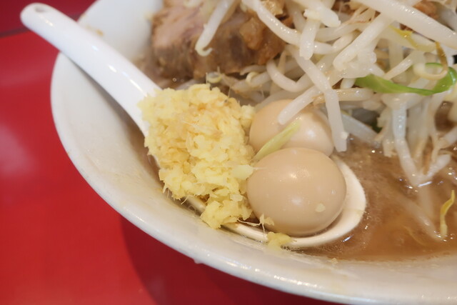 ラーメン半分 900円 + ニンニク + SK100円うずら110円