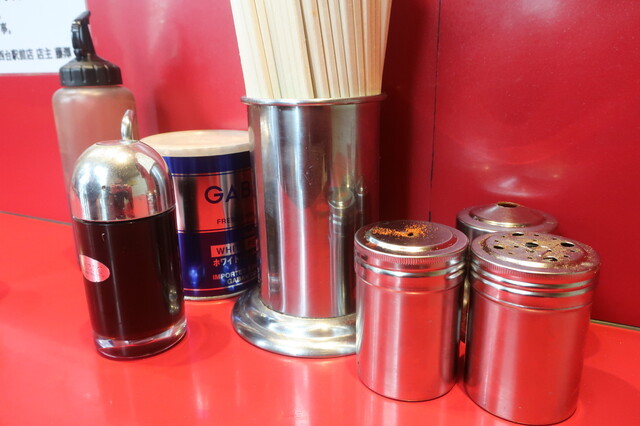 一味・粗挽き唐辛子・ホワイトペッパー・醤油ダレ・赤酢・花椒