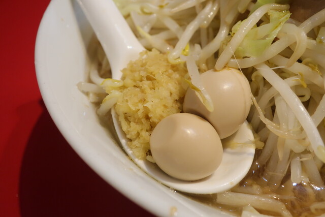 ラーメン半分 830円+ニンニク少し+青ネギ110円+玉子60円