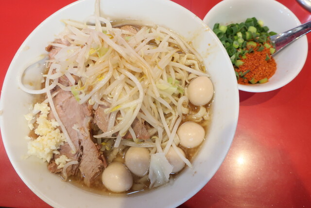 ラーメン少なめ+ニンニク少し+青ネギうずら