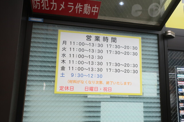 カウンター11席のみ(基本ロットは6・5・6・5・・・)