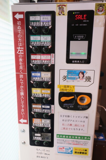食券制(千円札のみ対応)、なるべく小銭を用意しよう