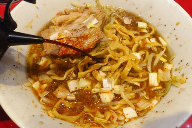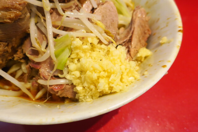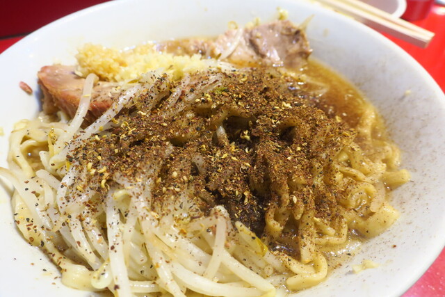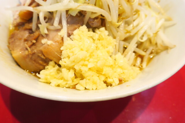 汁なし半分+ニンニク多め+ショウガ半分