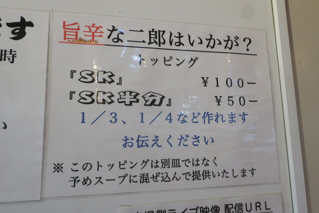 トッピングコールは提供直前、逆に何かを少なめにする場合や汁なしは食券提示時に