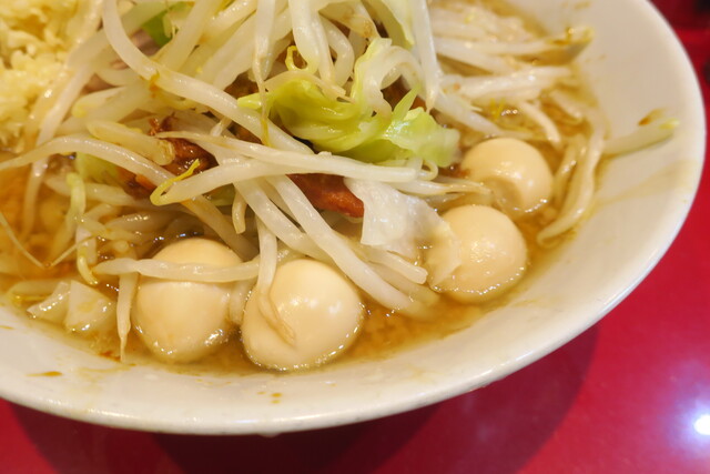 ラーメン半分+ニンニク多め+うずら