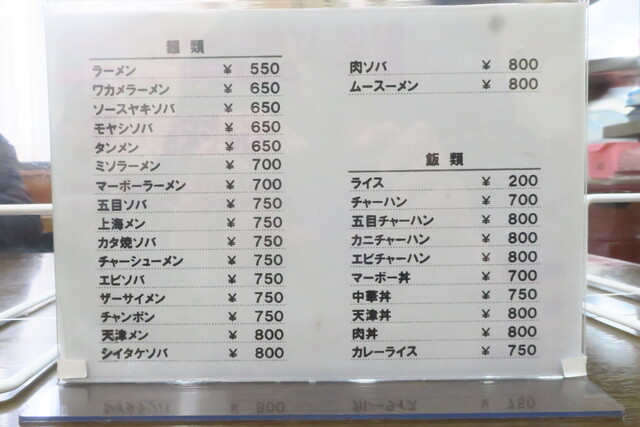 基本メニューは、ラーメン、タンメン、ミソラーメン、チャンポン