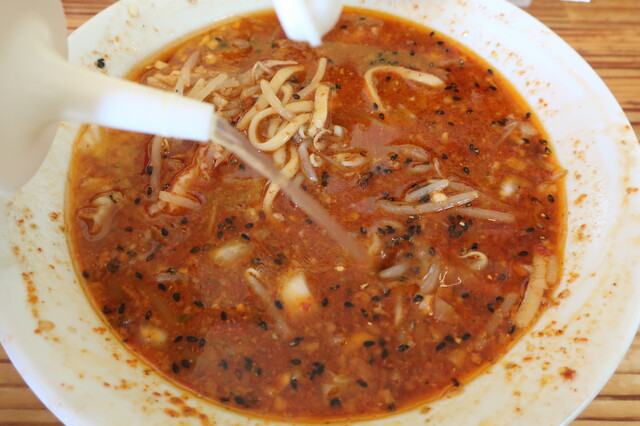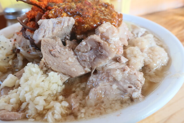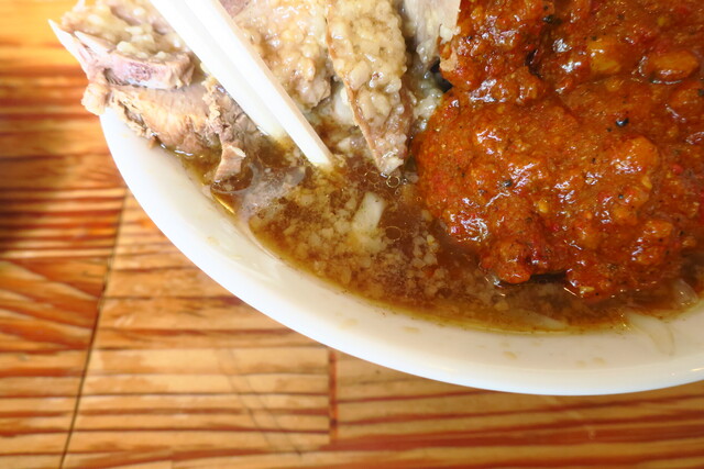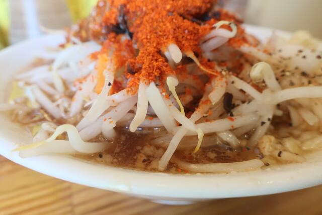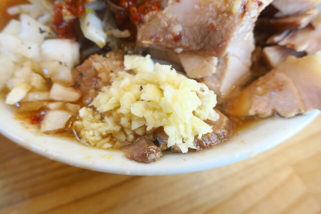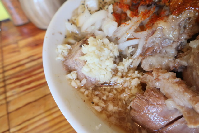 ぶた入りラーメンスープ抜き+ヤクミにんにくアブラのり