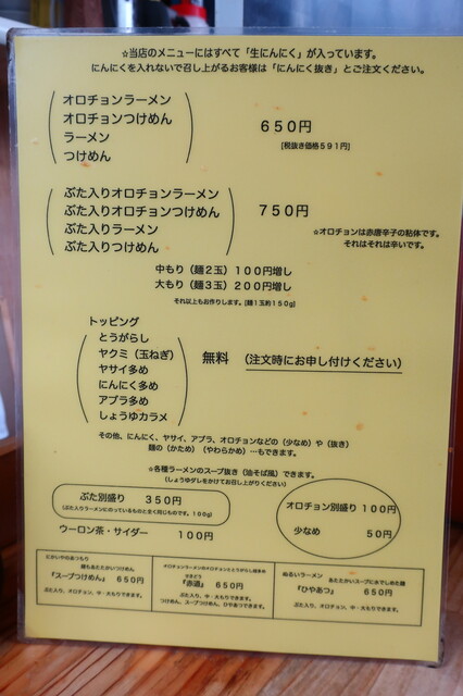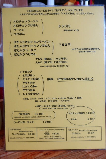 その他、オロチョン、ぶた入り、スープ抜き等でバリエーションを構成