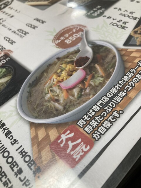 違いはゲソ天を付けるか、付けないかくらいです。家内は冷たい肉そば、私は「大人気」の文字に惹かれ「味噌ラーメン」をオーダー。