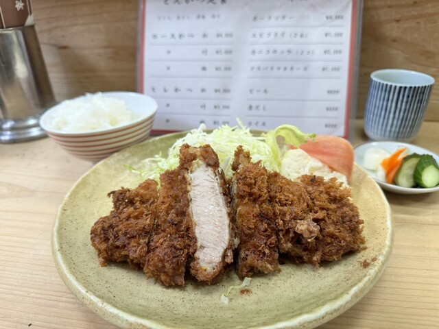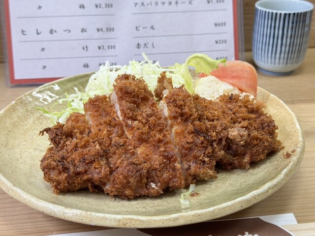 初めて来たのは20年くらい前だろうか。今も名店のままである。変わったのは自分の方で、デカいトンカツをお昼に食べると、午後がだいぶキツくなっている。ここはレモンは出さないんですね。あとカラシも出ない。たぶんそれが正解で、肉がうまければいらないんだろう。それで、昔と違うと感じたのは揚げ具合。衣は少し色が濃く、肉の内側はやや火が通りすぎていた。それでも美味しい。今も続けてくれていてありがとうございます。